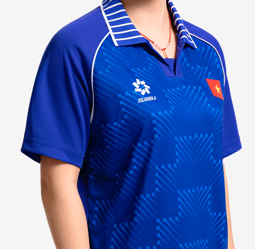 Áo polo Seagame 2025 được thiết kế với cảm hứng từ những vệt sao băng, vừa mang tinh thần hiện đại, vừa gửi gắm khát vọng bứt phá của thể thao Việt Nam. Sản phẩm thuộc Bộ sưu tập Rise Beyond, được tạo nên từ chất liệu 100% polyester bền bỉ, thoáng khí, đồng hành cùng vận động viên trên mọi hành trình.