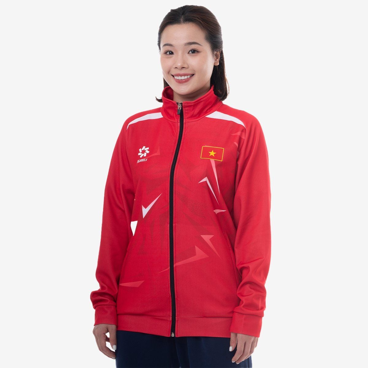 Thuộc BST Đội tuyển Olympic VN24, bộ suvec với họa tiết chữ V cách điệu không chỉ là một chi tiết trang trí đơn thuần, mà còn là biểu tượng ẩn chứa ý nghĩa sâu sắc về tinh thần và khát vọng của người Việt Nam.