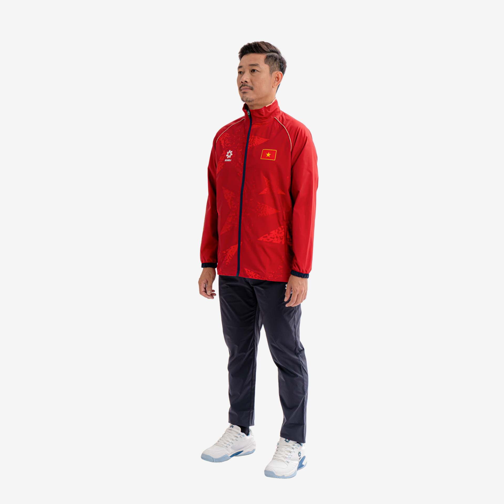Chất liệu gió cao cấp: Bề mặt vải nhẹ, thoáng và có khả năng cản gió tốt, hỗ trợ người mặc giữ ấm trong điều kiện gió lạnh nhưng không gây bí bức. Đây là lựa chọn phù hợp cho vận động viên khi khởi động, di chuyển hoặc tập luyện ngoài trời.