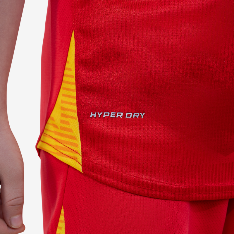 Công nghệ HyperDry với khả năng thoát ẩm tức thì, HyperDry giúp làm bay hơi mồ hôi nhanh chóng, giữ cơ thể bé luôn khô thoáng và dễ chịu dù thi đấu trong thời tiết nóng bức. Nhẹ hơn, mát hơn – cho từng pha bứt tốc đầy tự tin.