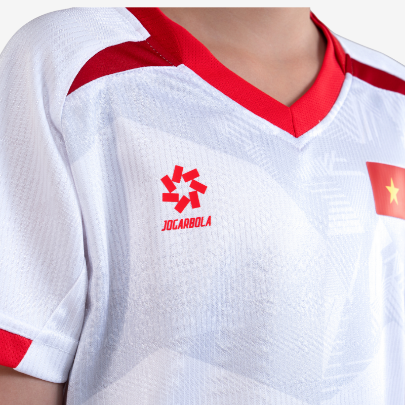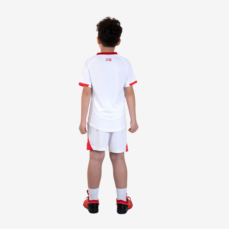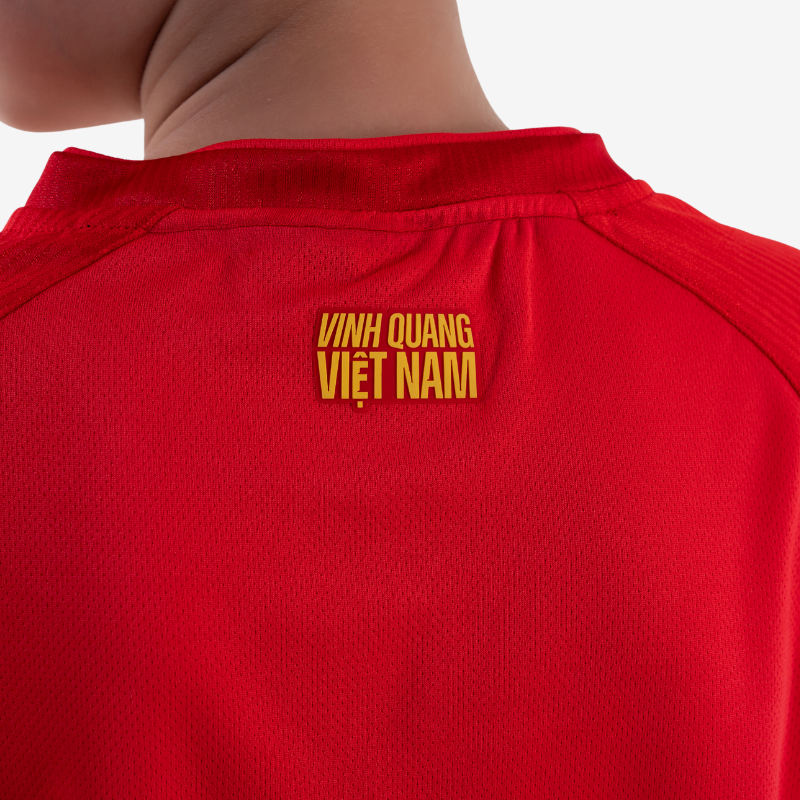 Bộ thi đấu Đội tuyển Bóng đá Quốc gia 2025 – Phiên bản dành cho trẻ em nằm trong Bộ sưu tập “Vinh quang Việt Nam”, mang trong mình thông điệp về niềm tự hào dân tộc, tinh thần kiên cường và khát vọng vươn lên của những chiến binh sao vàng.