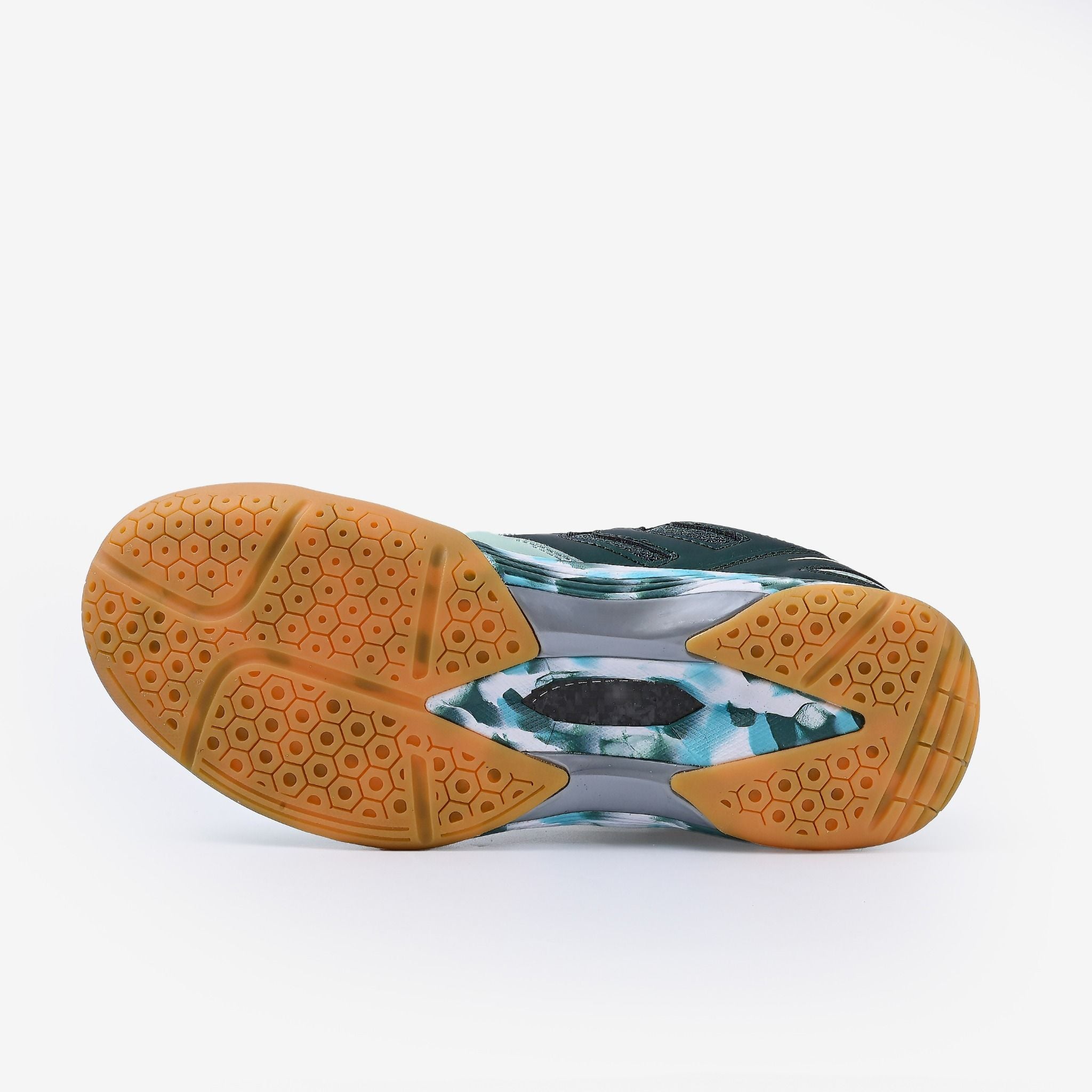 Đế ngoài cao su cao cấp được gia cố thêm bằng TPU cùng thiết kế họa tiết lục giác giúp tăng tuổi thọ giầy, thiết kế rãnh sâu gia tăng ma sát, chống trơn trươt, an toàn, linh hoạt trong các động tác di chuyển nhanh