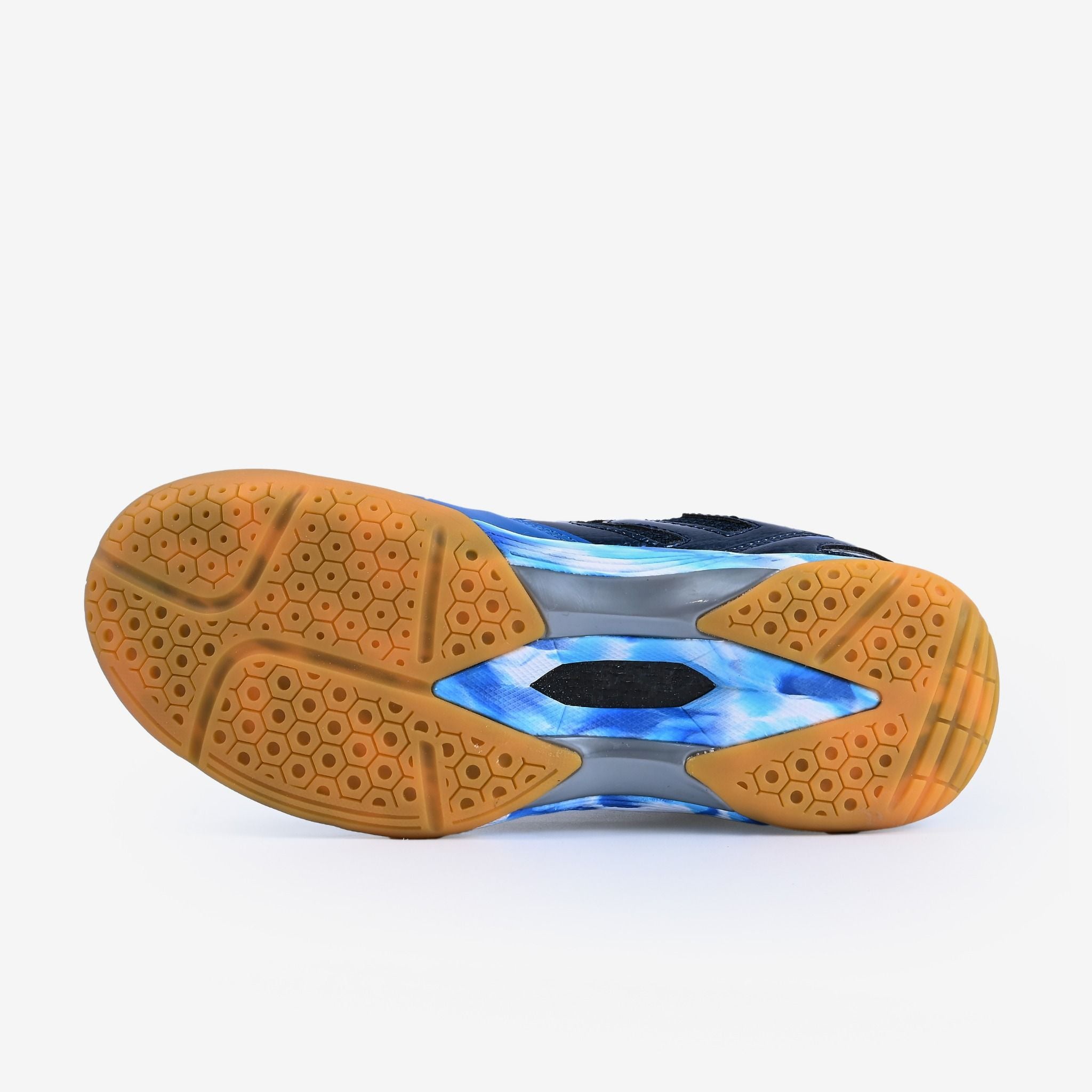 Đế ngoài cao su cao cấp được gia cố thêm bằng TPU cùng thiết kế họa tiết lục giác giúp tăng tuổi thọ giầy, thiết kế rãnh sâu gia tăng ma sát, chống trơn trươt, an toàn, linh hoạt trong các động tác di chuyển nhanh