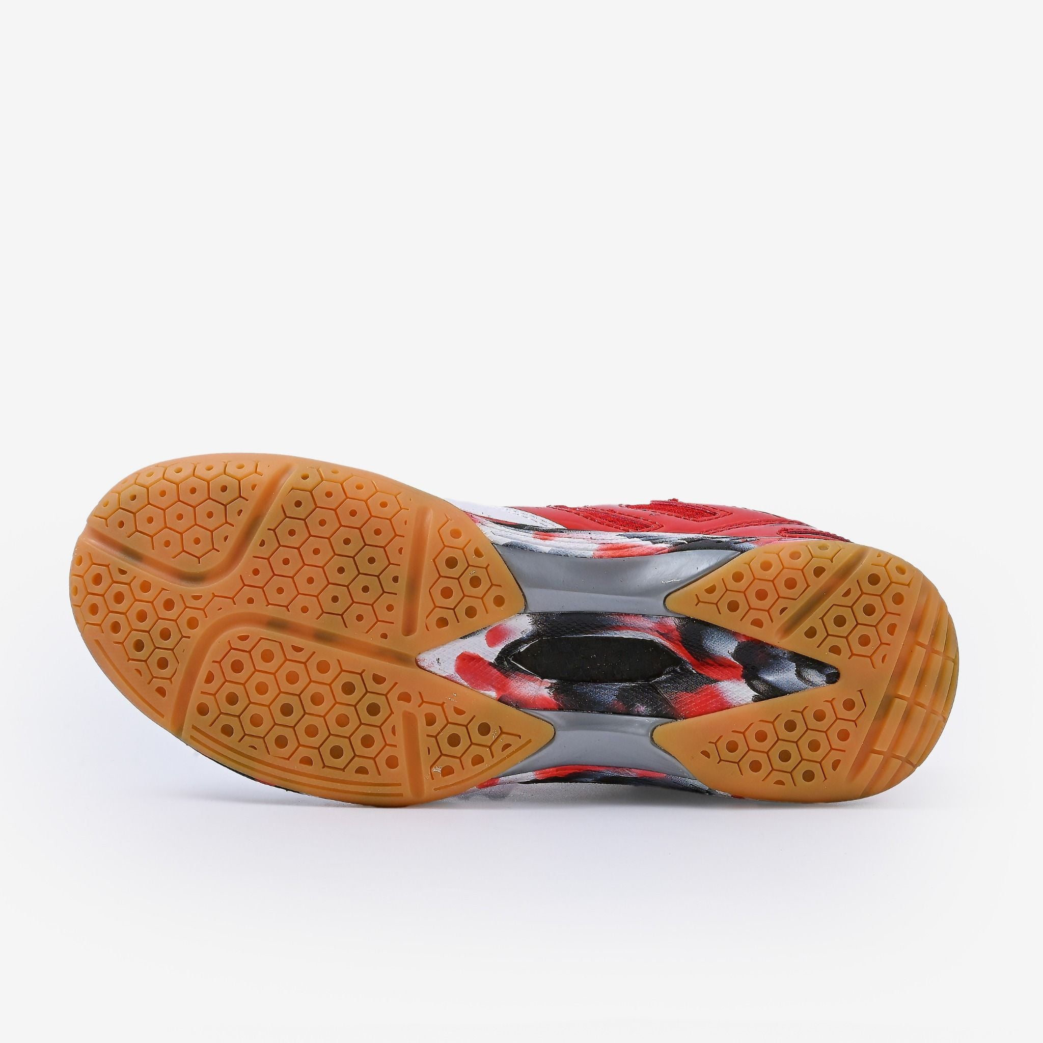 Đế ngoài cao su cao cấp được gia cố thêm bằng TPU cùng thiết kế họa tiết lục giác giúp tăng tuổi thọ giầy, thiết kế rãnh sâu gia tăng ma sát, chống trơn trươt, an toàn, linh hoạt trong các động tác di chuyển nhanh